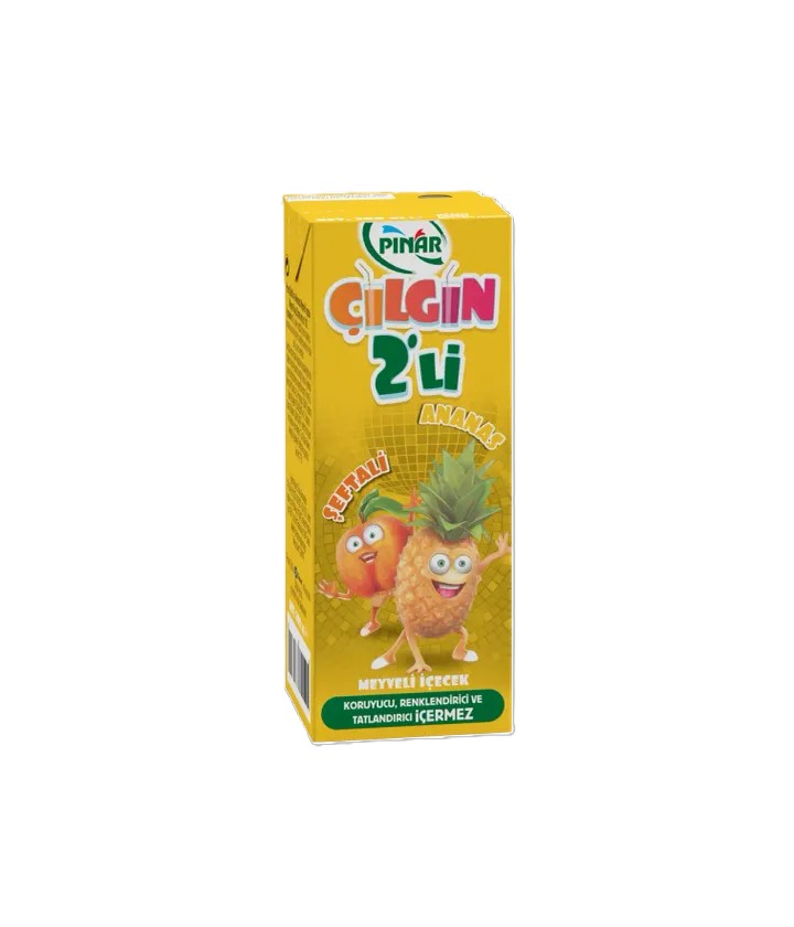 Pınar, vitamin ve mineraller bakımından zengin olan elma, armut, çilek, şeftali, ananas ve portakal gibi vitamin zengini meyveleri kullanarak hazırladığı Pınar Çılgın İkili serisi ile keyifli bir içim sunar. Çocukların ve yetişkinlerin severek tükettiği meyve suları özenle hazırlanarak Pınar kalitesiyle size ulaşır. Eşsiz tatların harmanlanarak sunulduğu, vitamin deposu meyvelerden yapılan bu meyve suları ile güne zinde başlayabilirsiniz. Kahvaltı ve ara öğünlere lezzet katan çılgın ikili elma armut çocuklar tarafından çok sevilir. Sağlıklı nesiller yetişmesini destekleyen Pınar’ın, özenle hazırladığı bu ikili lezzet; tatlandırıcı, renklendirici ve koruyucu içermez. Güvenli ambalajı ile dökülme veya akma riski taşımayan bu leziz meyve suyunu, çocukların beslenme çantalarına ekleyebilirsiniz.